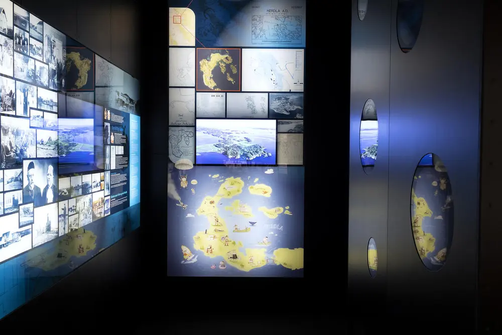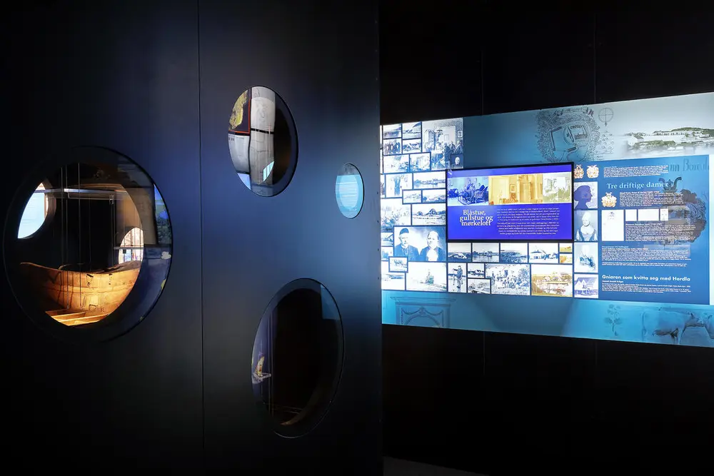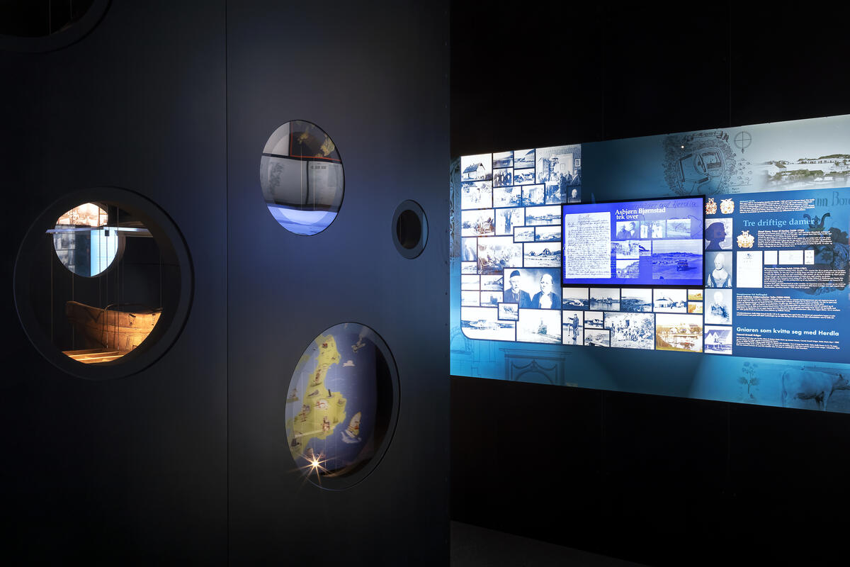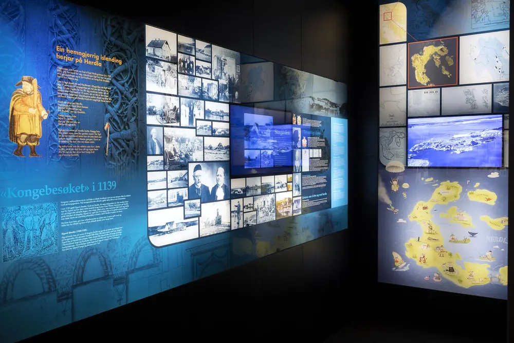 I utstillinga har me freista å få med både storhendingar og kvardagsliv. I monteret sentralt i rommet viser me mange av dei mest spennande gjenstandane våre med dåpskjolen frå Herdla gård på heidersplassen.