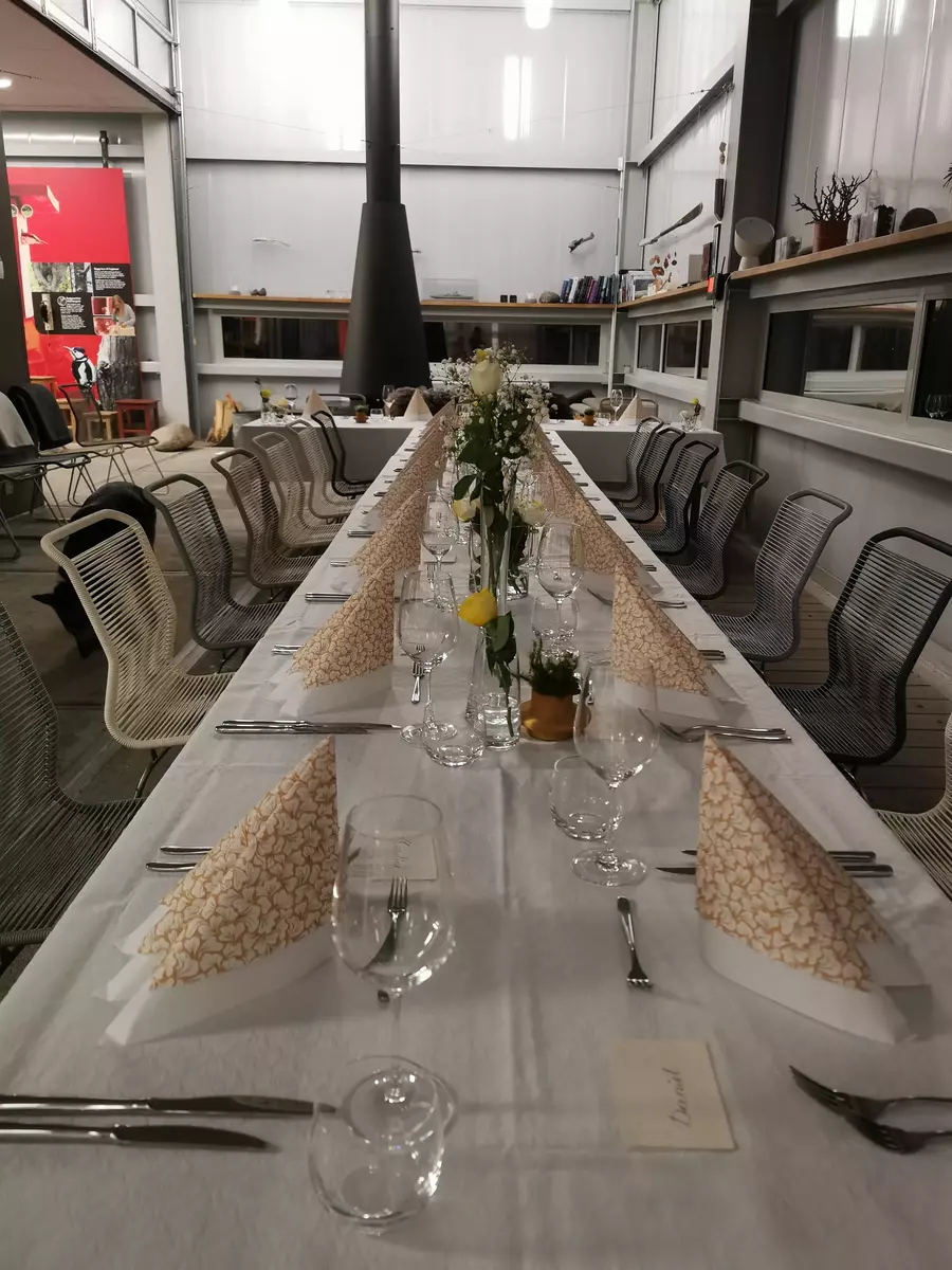 Når det gjeld servering til selskap/arrangement så samarbeider museet med Salt & Peter. Det inneber at me kan tilby alt frå enkle lunsjmåltid til middag med fleire rettar. Er det aktuelt med matbestilling så foreslår me først ein samtale om aktuelle menyforslag, deretter utarbeider Salt & Peter eit pristilbod. Bestillinga kan gå via museet eller direkte til Salt & Peter.